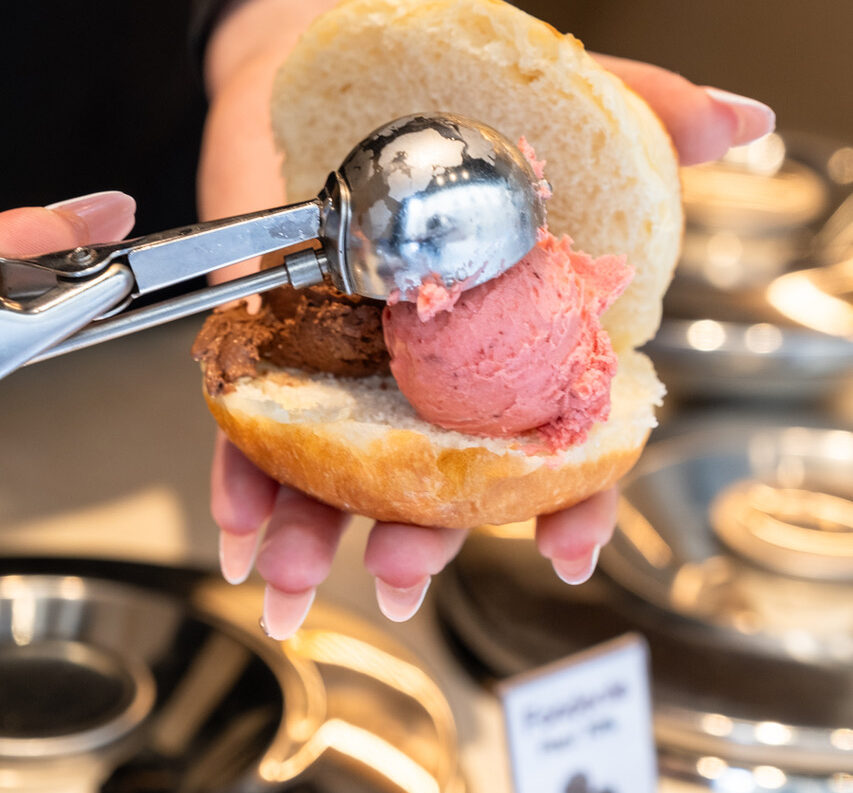 In versione iconica cinese al riso e sorbetto abbinato a fiori ed erbe nei dessert, ma anche soffice farcia dei croissant, il gelato di Griffa รจ concezione