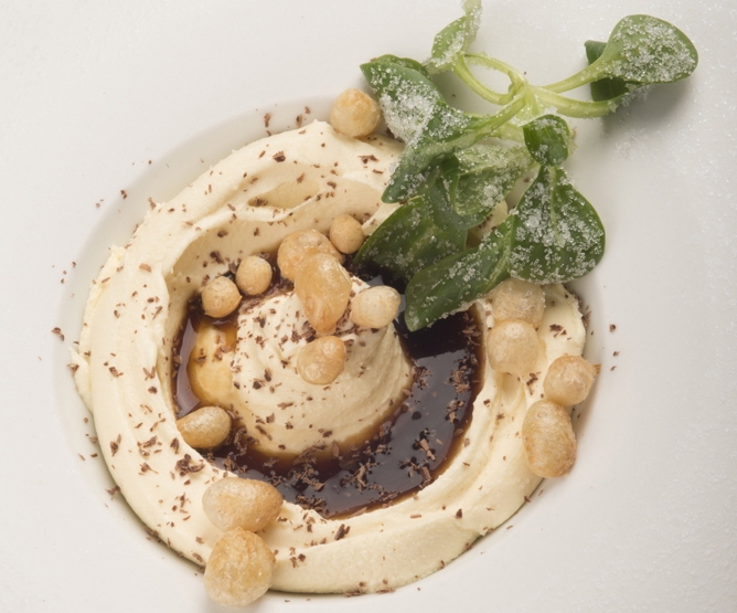 Pastorizzare la base da gelato con le spezie. Lasciare in infusione per 24 ore, filtrare. Mettere in Pacojet e fare congelare. All’utilizzo pacossare.
