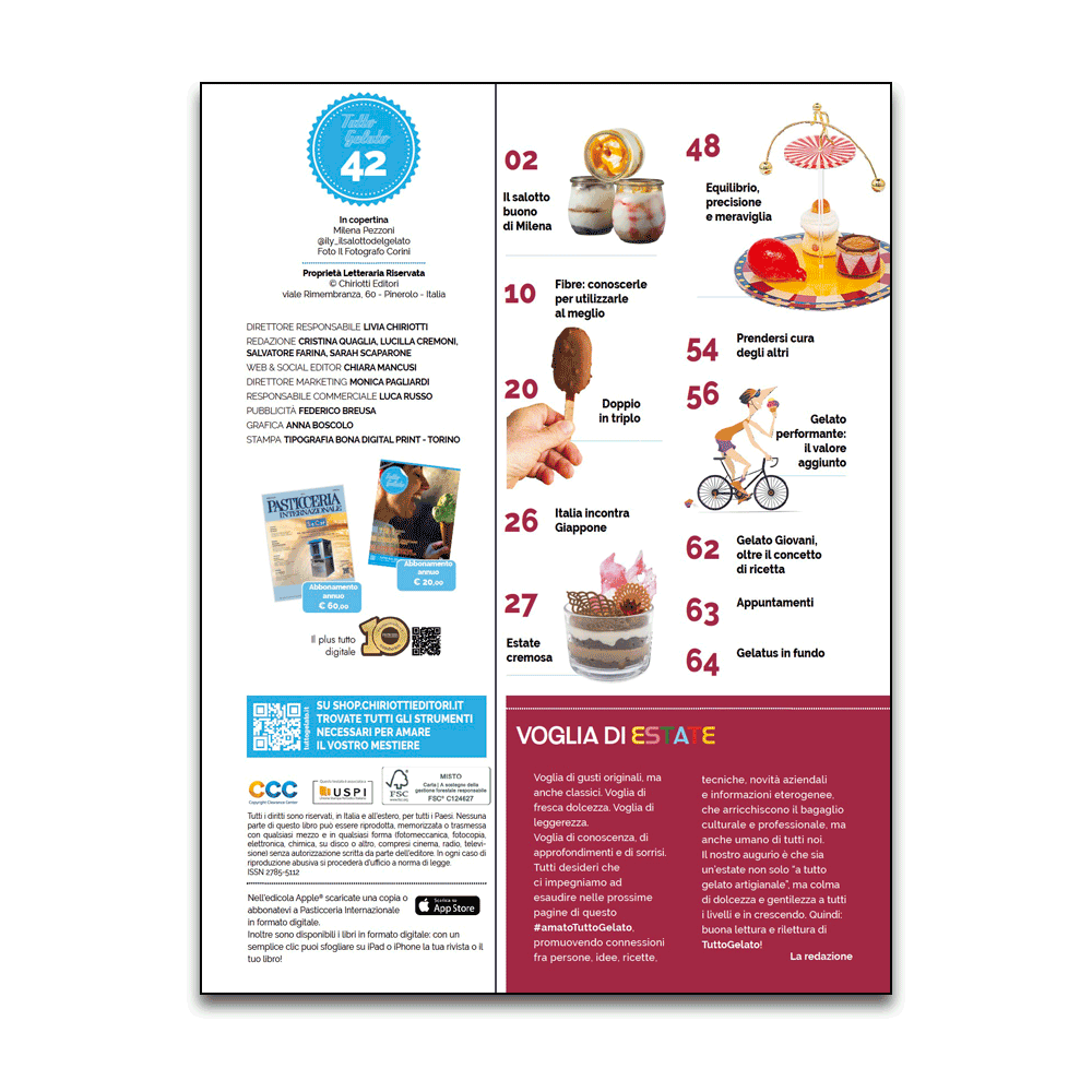 Voglia di gusti originali, ma anche classici. Voglia di fresca dolcezza. Voglia di leggerezza. Voglia di conoscenza, di approfondimenti e di sorrisi. Tutti desideri che ci impegniamo ad esaudire nelle prossime pagine di questo #amatoTuttoGelato, promuovendo connessioni fra persone, idee, ricette, tecniche, novità aziendali e informazioni eterogenee, che arricchiscono il bagaglio culturale e professionale, ma anche umano di tutti noi.