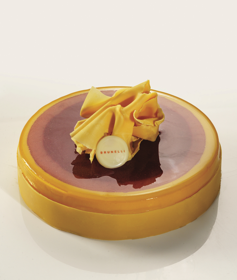 In foto, Maracaibo di Paolo Brunelli. Cremoso mango e passion fruit, gelatina di fragola, biscotto senza glutine, glassa anidra e trasparente. Trovi la ricetta completa sono sul numero #365 di “Pasticceria Internazionale”
