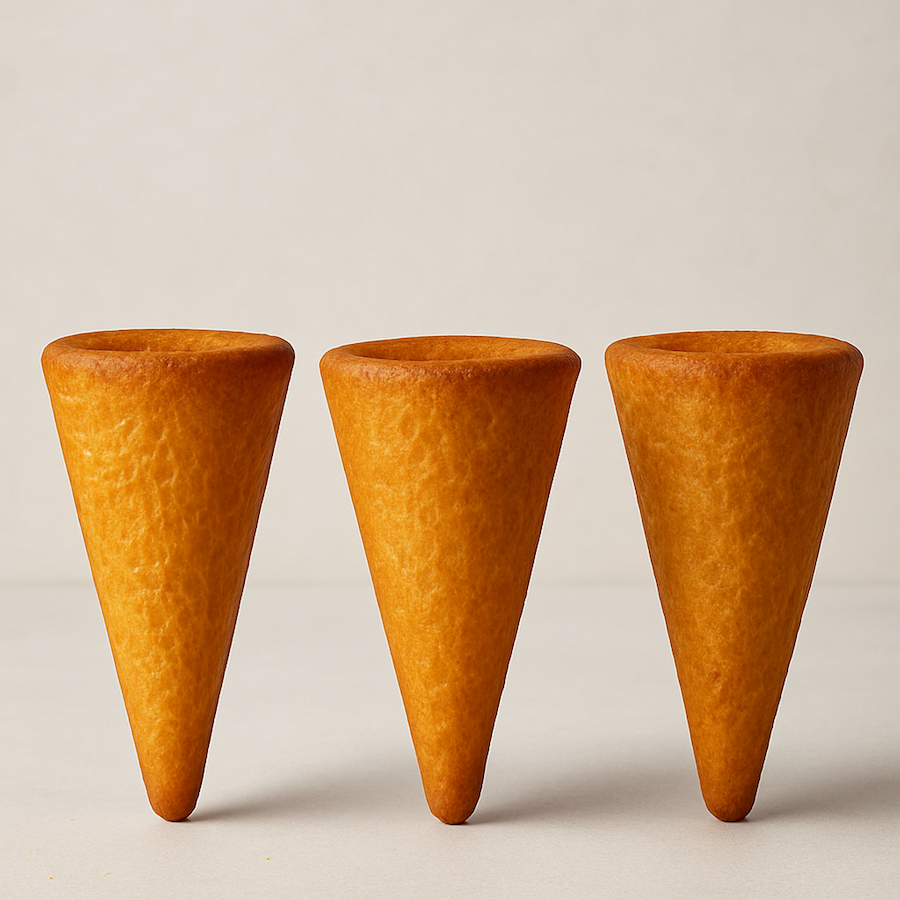 La forma a cono è stata scelta a novembre 2024, considerando i tempi della progettazione e della creazione degli stampi di latta, mentre per l’impasto si è optato per una consistenza pandoreggiante, in quanto non è necessario procedere al rovesciamento dello stampo stesso. Il prodotto finale, molto soffice, con la forma di un cono, ha il profumo di lievito madre, burro e vaniglia, i sigilli del lavoro di Tortora, su cui si posano le creazioni del marchigiano Brunelli. In uscita a inizio luglio, il Pankono è in vendita presso le gelaterie di Brunelli a Marzocca e Senigallia, supportato da pop up ed eventi dedicati lungo il litorale della regione, come a Portonovo, senza trascurare Milano e il lago di Garda.