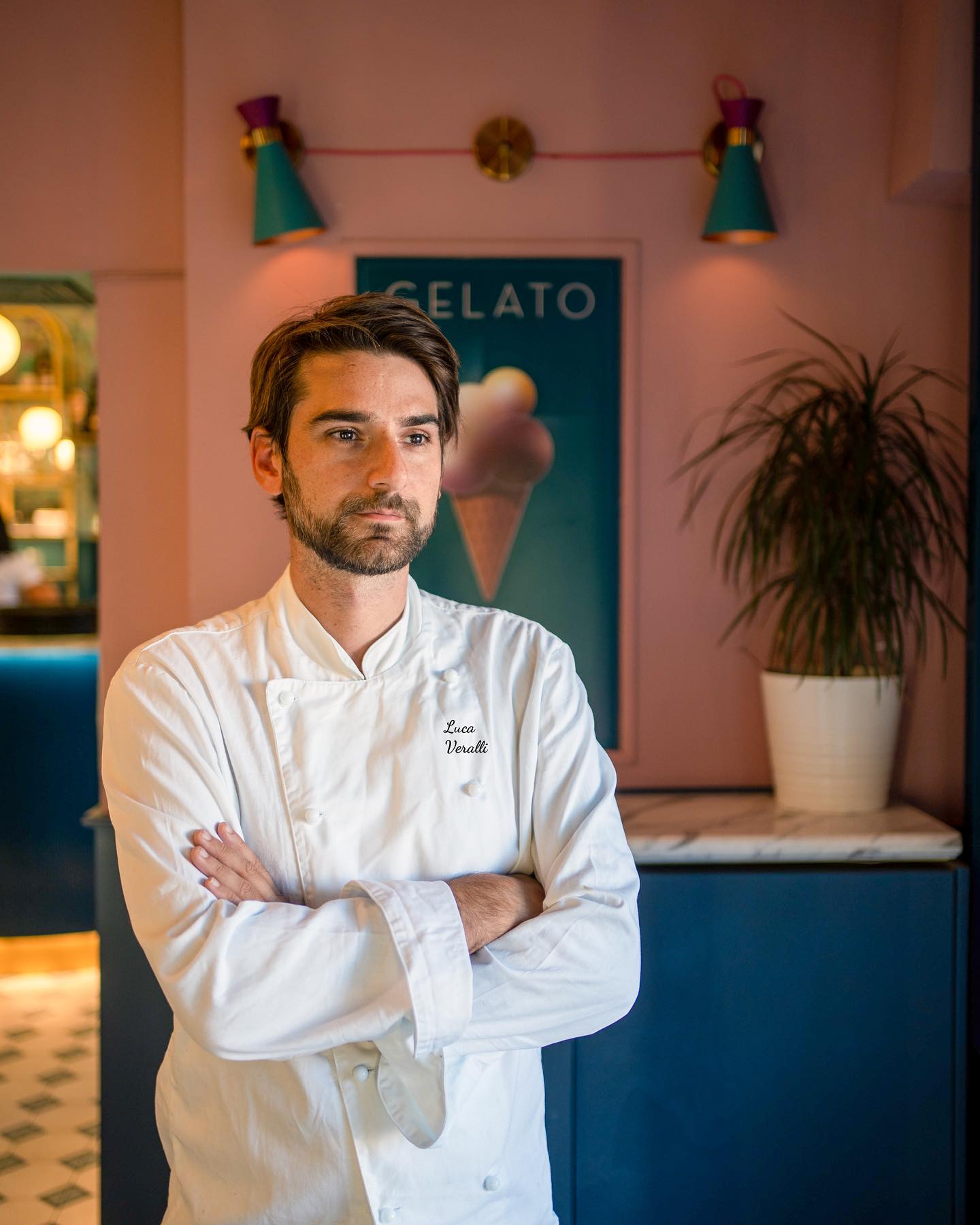 Luca Veralli (in foto, sotto) riapre la sua gelateria Glam Tivoli, nel centro cittadino, nelle vicinanze di Villa d’Este. Ampio e accogliente, con un arredo dal gusto contemporaneo, con laboratorio e sala interna, il locale accoglie una trentina di persone, oltre a una ventina nel dehors. Con lui, lavorano la sorella Ludovica, suo braccio destro nella gestione, e la compagna Diana De Lorenzi, blogger & content creator, più due collaboratrici.