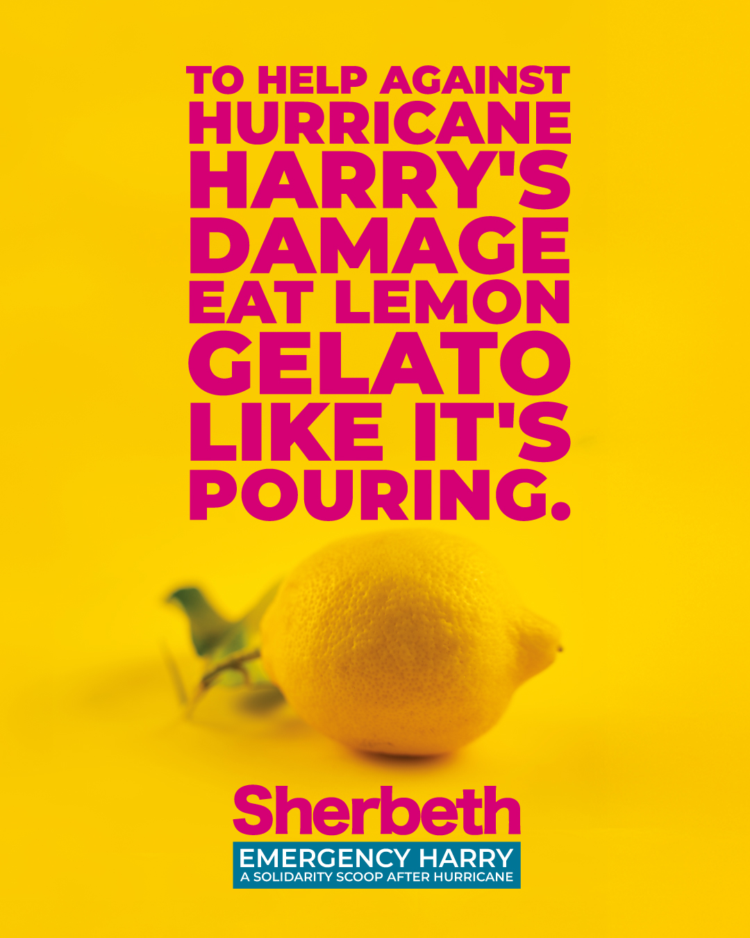 Sherbeth Emergenza Harry è l’iniziativa solidale promossa da Sherbeth a sostegno alle comunità siciliane colpite dall’uragano Harry. Fino al 24 marzo, in occasione del Gelato Day, i gelatieri aderenti sono invitati a proporre il gelato al gusto limone, simbolo identitario della Sicilia. L’incasso derivante dalla vendita di questo gusto potrà essere liberamente devoluto dai singoli alla Regione Siciliana per il supporto alle aree colpite.