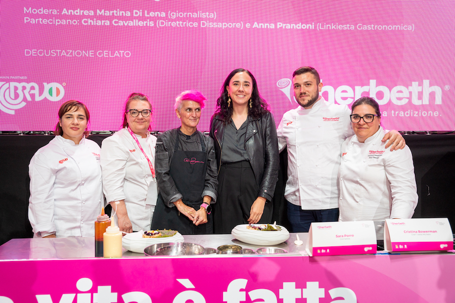 Con il talk La bellezza del gelato, l’attenzione ricade sul tema di come sia cambiato, nel corso degli anni, il modo di presentare il gelato, complice la degustazione di gelato alla pala di fico d’India. Si è parlato anche di gelato gastronomico e inclusivo con Chiara Spalluto, suo un gelato di ricotta forte, con aglio fermentato, menta e black lime, servito con riduzione di pomodoro su pane croccante.