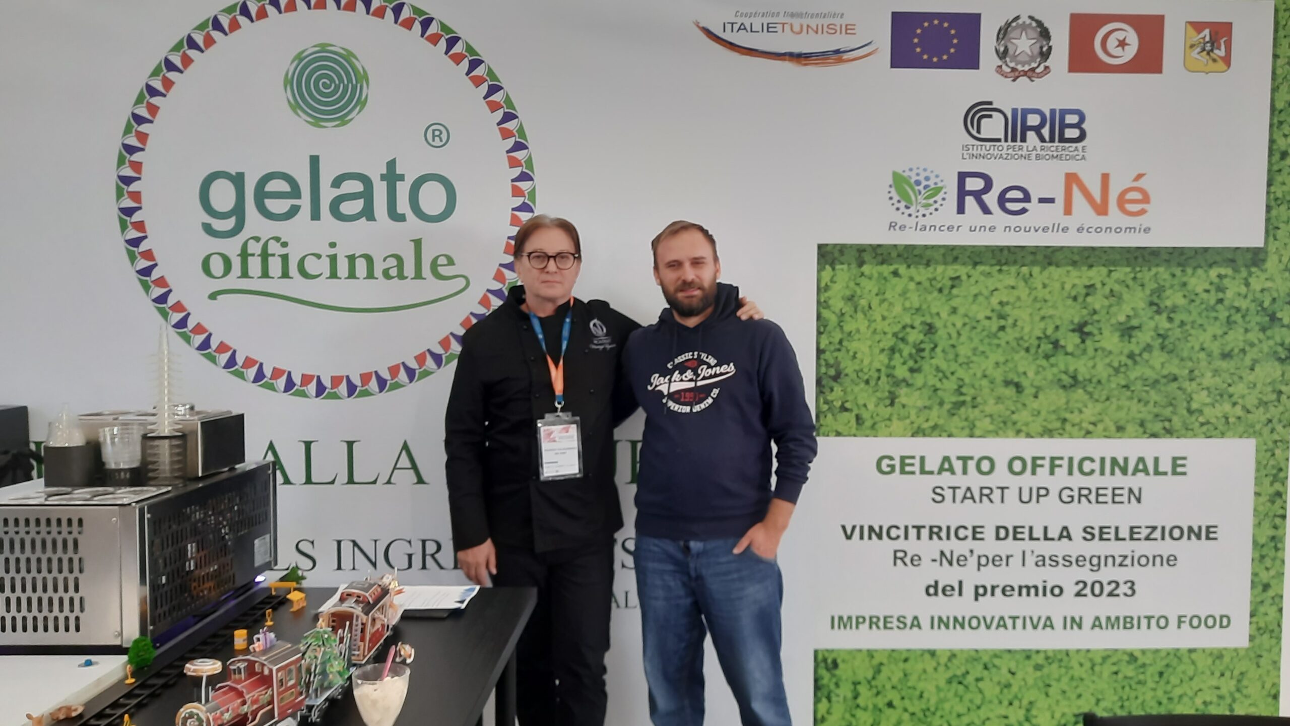 Maurizio Valguarnera e Yuri Mikhaylov, suo collaboratore, allo stand di Gelato Officinale, premiato come Impresa Innovativa in ambito Food.